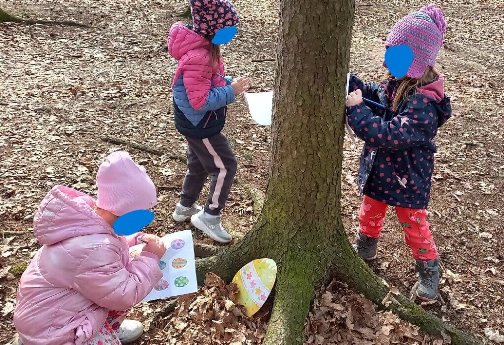 – vždy vezmou 1 vajíčko a snaží se ho donést k učitelce do košíčku