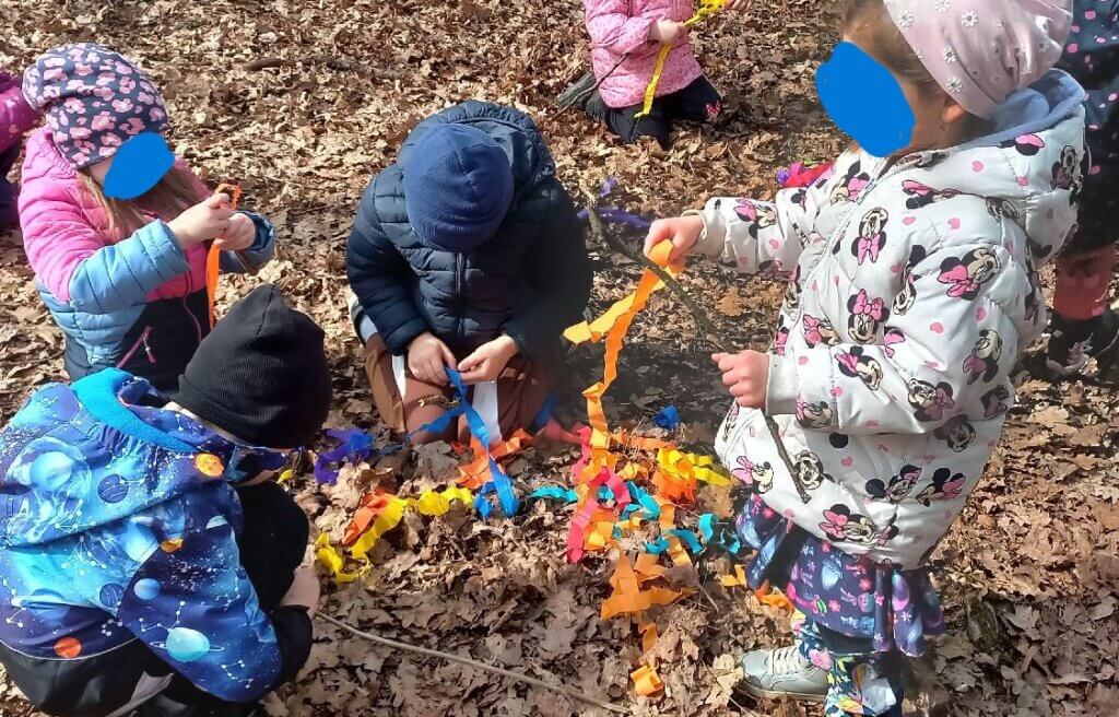 – pleteme před dětmi, nakonec ozdobíme barevnými stužkami